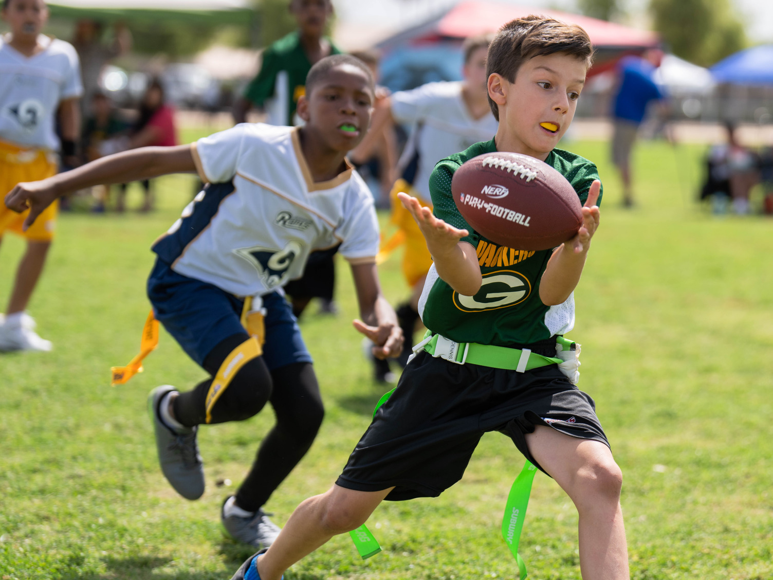Every play starts with a snap between the center and quarterback. In flag football, centers have two options after the snap: they can play as a shield, warding off defenders using lateral movements, or become a receiver, opening themselves up for a pass. So, not only do you need to learn the different snapping methods, but you also need to make these movements seamless so you can quickly take off on your route afterward. These football drills provide a variety of snapping stances and techniques, so you can find a perfect rhythm with your quarterback.